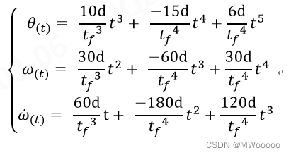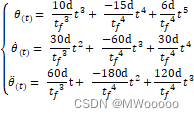 已知条件:初始和目标欧拉角已知,初始速度、加速度为0,最终速度、加速度为0。插值时间为tf。使用五次多项式时间律可以满足条件,位置、速度、加速度均连续。