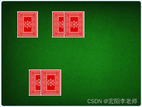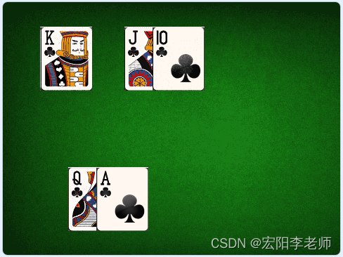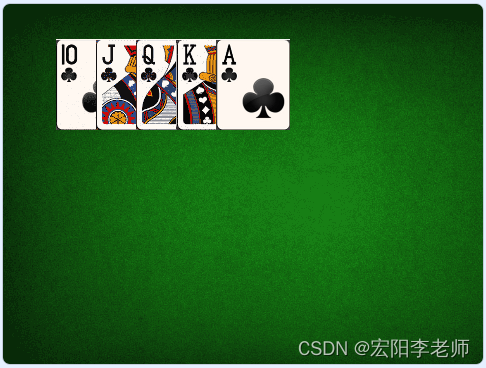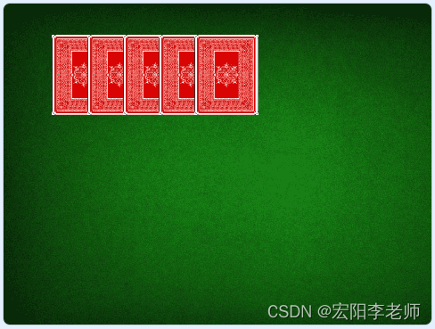 2)按下一次空格键,五张草花牌背面朝上进行磁机洗牌(能看到牌面移动过程);
