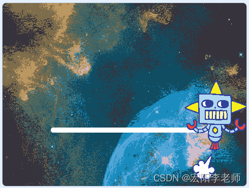 2)等待1秒,机器人水平向右移动到舞台右侧边缘,同时画出租细10的白色线段(能看到移动过程);