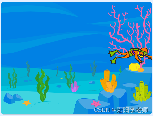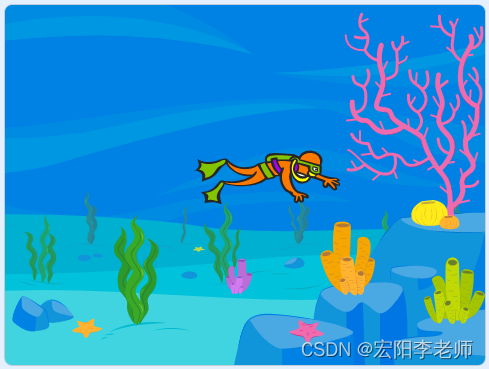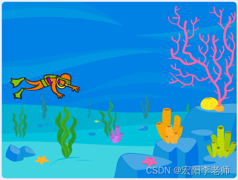 3)潜水员水平移动到舞台右侧边缘后停下。