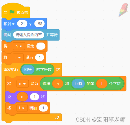 3)输入完成后,鹦鹉会逐一说出每个字,间隔1秒。