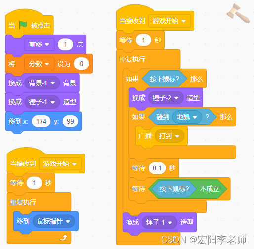 3)等待1秒后,锤子持续跟随鼠标指针移动,按下一次鼠标左键,锤子砸下后抬起;