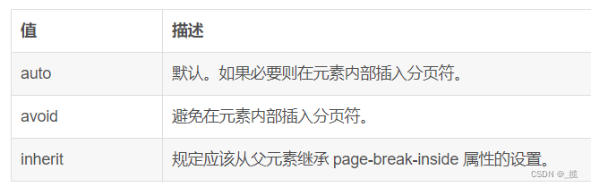 4.3page-break-inside(用于设置是否在指定元素中插入分页符)