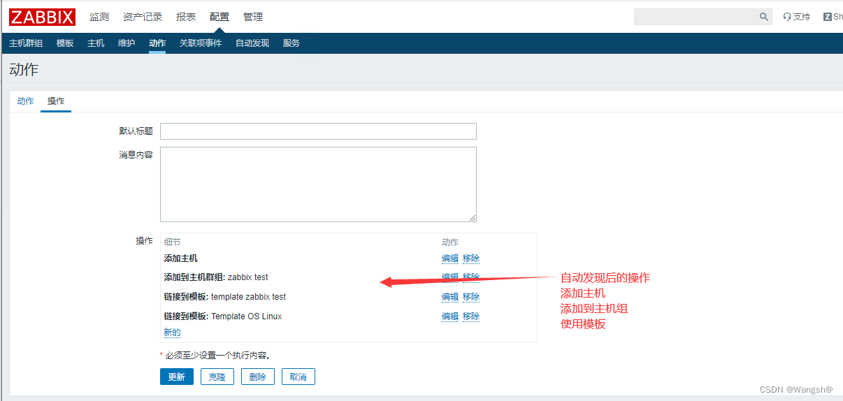 配置好自动发现动作以后,过几分钟zabbix就会自动将发现的主机执行对应的操作,如图,主机自动添加成功。