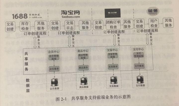 淘宝的共享服务中心包括多个服务中心:用户中心,商品中心,交易中心,店铺中心,物流中心,营销中心,数据服务中心等。