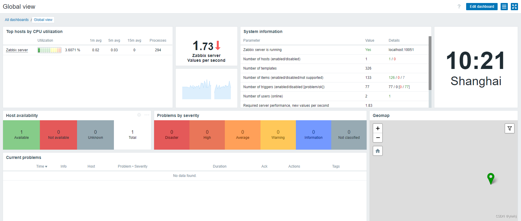 22:登陆系统Zabbixf 服务已经运行。