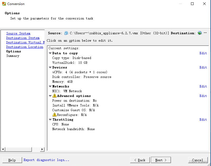 3:vmdk格式的 image 可直接在 VMware Player、 Server 和 Workstation 产品中使用。要在 ESX,、ESXi 和 vSphere 中使用,它们必须使用VMware converter进行转换。