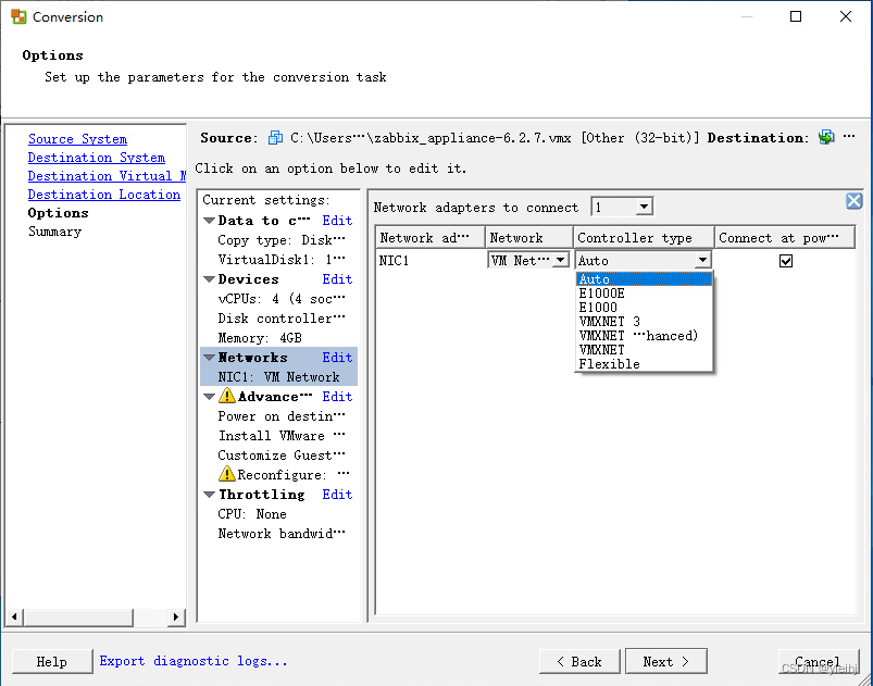 22:这时候需要VCenter中关闭虚拟机。然后编辑虚拟的配置,查看现在的网卡的信息,发现适配器的类型是可变的。