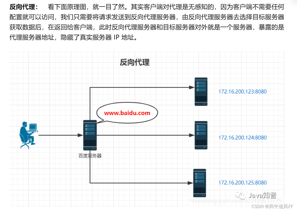 我们不需要访问真实的ip,只需要访问 这个服务的代理服务器即可,就会被转发到真实的ip,隐藏了真实服务器的ip地址。