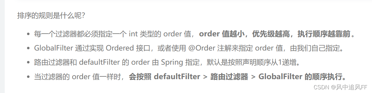 过滤器 如果 order (用来排序的)的值都一样,那就默认过滤器>当前过滤器> GlobalFilter。