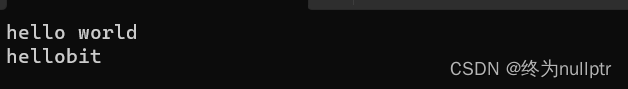 {printf("hello"" world""\n");const char* msg = "hello""bit""\n";printf(msg);return 0;