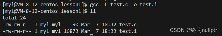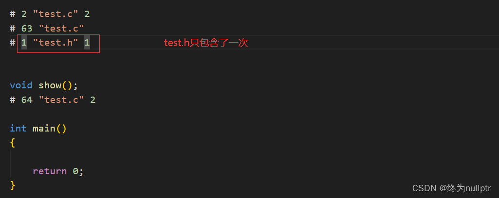 因为#define是在预处理阶段完成替换的,下面在Linux平台下观察一下预处理完成之后生成的test.i文件: