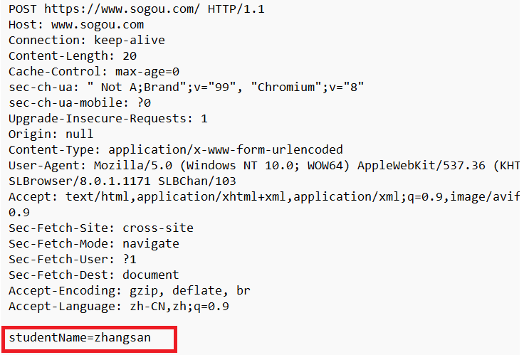 抓包后的效果和GET有些许差异,POST里面的URL并没有变化,但是body里面多了一个和GET一样的键值对,如下: