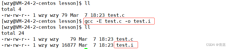 - -E 只进行预处理 不生成文件 你需要把他重定向到一个输出文件里面(否则将把预处理后的结果打印到屏幕上)