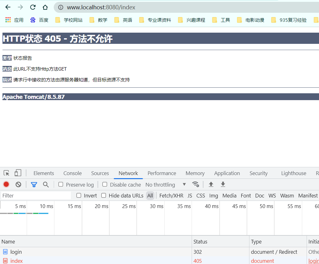 // 请求转发,总体一个请求,可以设置和获取属性request.getRequestDispatcher("/index").forward(request,response);