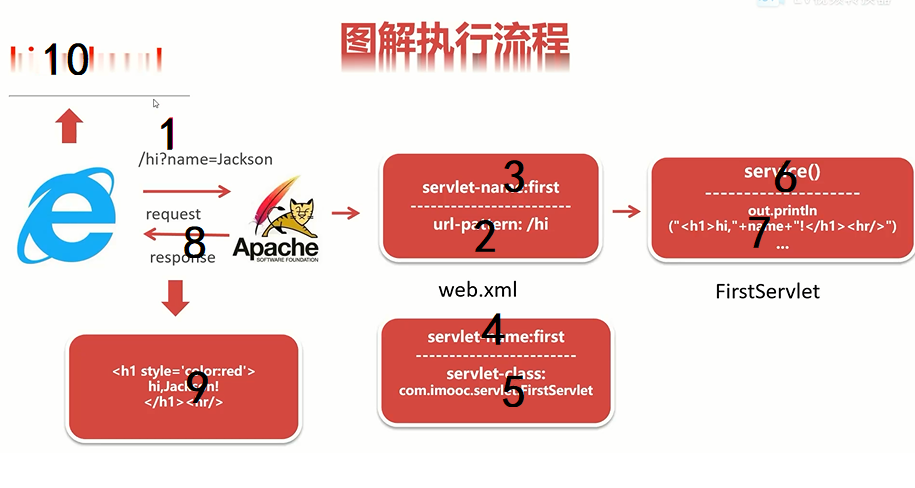 4.找到后Servlet处理请求,并且返回响应到浏览器