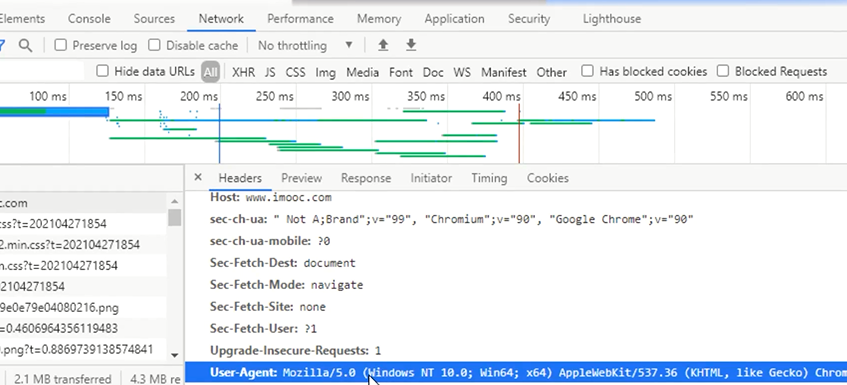 请求头里主要是客户端的一些基础信息,UA(user-agent)就是其中的一部分,而响应头里是响应数据的一些信息,以及服务器要求客户端如何处理这些响应数据的指令。请求头里面的关键信息如下: