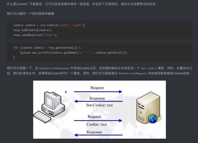 public class IndexServlet extends HttpServlet {@Overrideprotected void doPost(HttpServletRequest request, HttpServletResponse response) throws ServletException, IOException {response.setContentType("text/html;charset=utf-8");//根据cookie来查找session空间,并获取属性HttpSession session = request.getSession();String username=(String) session.getAttribute("username");response.getWriter().println("我是主页"+username);}@Overrideprotected void doGet(HttpServletRequest req, HttpServletResponse resp) throws ServletException, IOException {this.doPost(req,resp);}