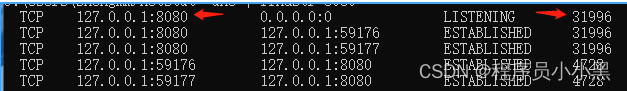 (1)打开cmd后,查找对应端口的进程
