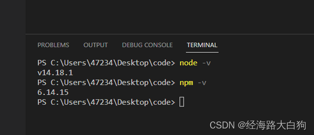 首先需要检查一下自己的node和npm是否安装成功了,没有安装的随便去找个教程,下一步下一步的安装上node,也不需要安装最新版,找一个大版本是12的14的都可以,不过安装上最新的也没问题。但我本项目开发所用版本为V14.18.1。检查的命令如下图,执行