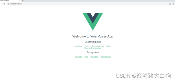 这里我们首推chrome浏览器,输入http://localhost:8080。至此,空Vue项目安装完成。
