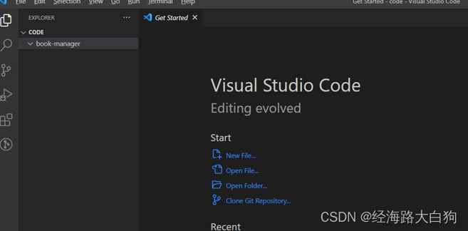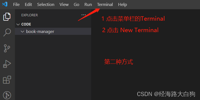 我们首先要开发B端管理员系统,可以在自己放代码的文件夹下新建一个文件夹起名 book-manager。并用vscode打开空项目,如下图所示