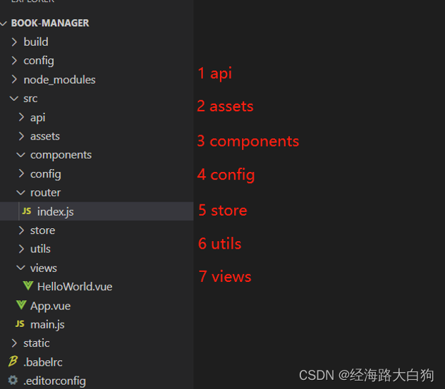 components: 使用Vue开发项目,脑子里要一直有组件这个概念,一直以来做面向对象开发,流传着一句名言叫万物皆对象,但到了Vue项目里,要谨记,你所在浏览器里看见的,都是组件。所以脚手架创建的这个目录,本来是准备用作页面中组件开发使用的。