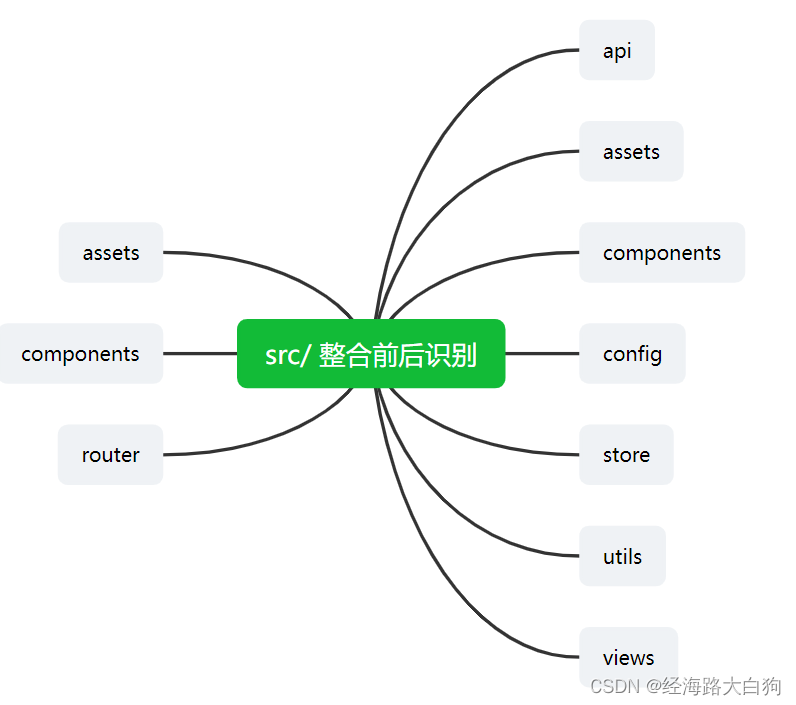 src: 除了项目所需的打包部署所需配置文件,除了node_modules项目依赖包,除了HTML落地页,除了webpack配置等信息,基本业务开发所需的内容都会包含在src目录下。
