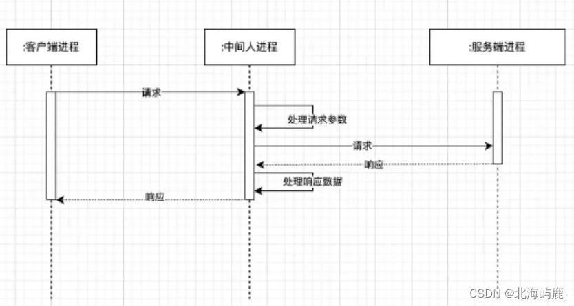 知道了两个进程的通信流程,我们要怎么抓包呢?举一个生活中的例子,小明暗恋小雯,于是他写了一封情书,但他有点害羞,找了小雯的好朋友小花帮忙传递情书。这个时候,小花可以负责小雯与小明之间的情书传递,作为中间人,她可以偷偷查看他们的情书内容。思路就是设置一个中间人进程负责抓包话都先与中间人进程通信,再进行转发。