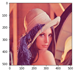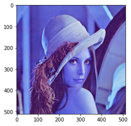 img = cv2.imread('E:/dataset/lena.bmp')#路径中不能有中文!!!plt.imshow(img)