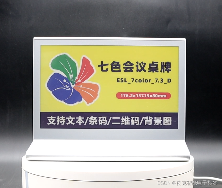 采用7.3吋低功耗彩色电子墨水屏,支持“黑白红黄蓝绿橙”七种颜色显示