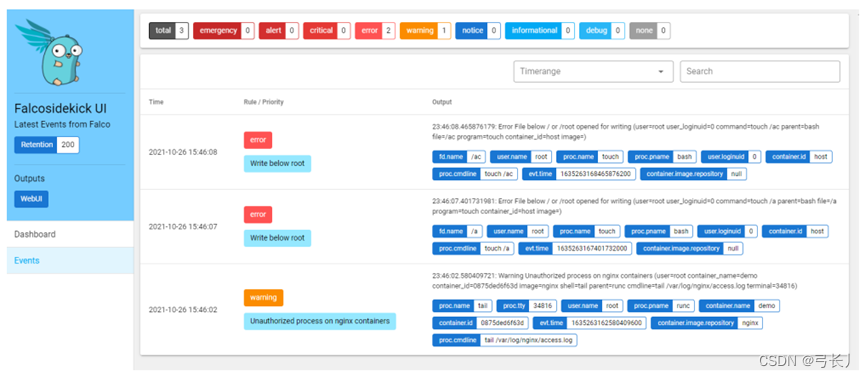 项目地址 https://github.com/falcosecurity/falcosidekick-ui