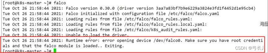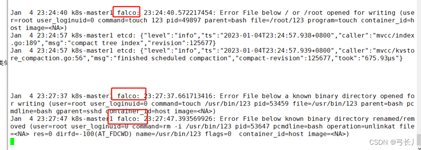 【】rpm --import https://falco.org/repo/falcosecurity-3672BA8F.asc【】curl -s -o /etc/yum.repos.d/falcosecurity.repo https://falco.org/repo/falcosecurity-rpm.repo【】yum install epel-release -y#【】yum update #更新系统,不更新系统会起不来。falco是一个守护进程【】yum install falco -y【】systemctl start falco【】systemctl enable falco【】lsmod|grep falco
