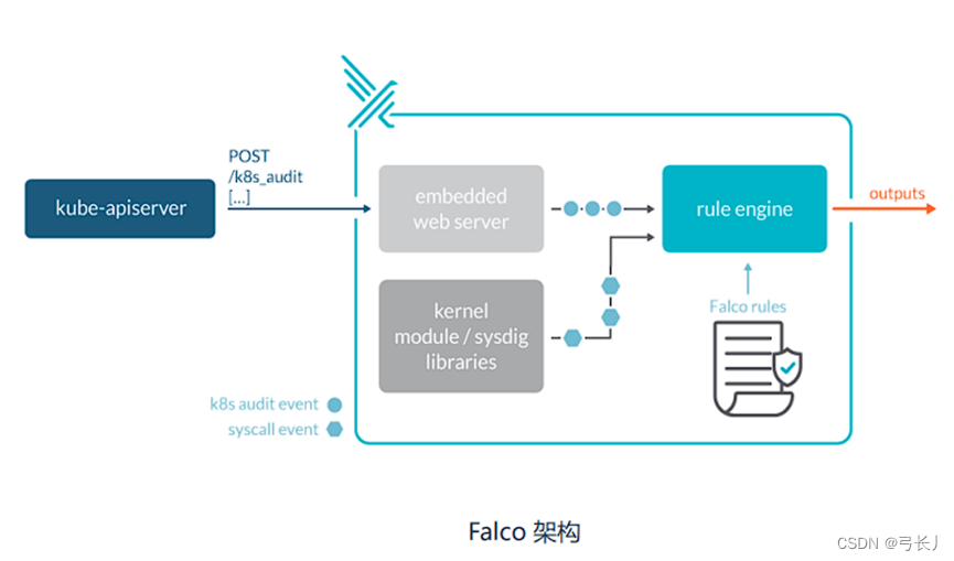通过内核中的模块检测系统调用,满足则输出到目标或者设备,手机和存储。支持对k8s审计日志的收集。