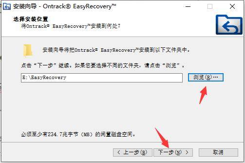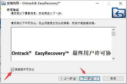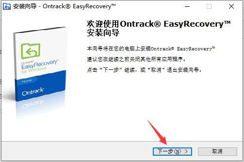 1、下载软件后运行软件程序,进入EasyRecovery安装向导界面,点击下一步。