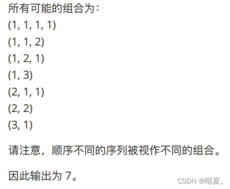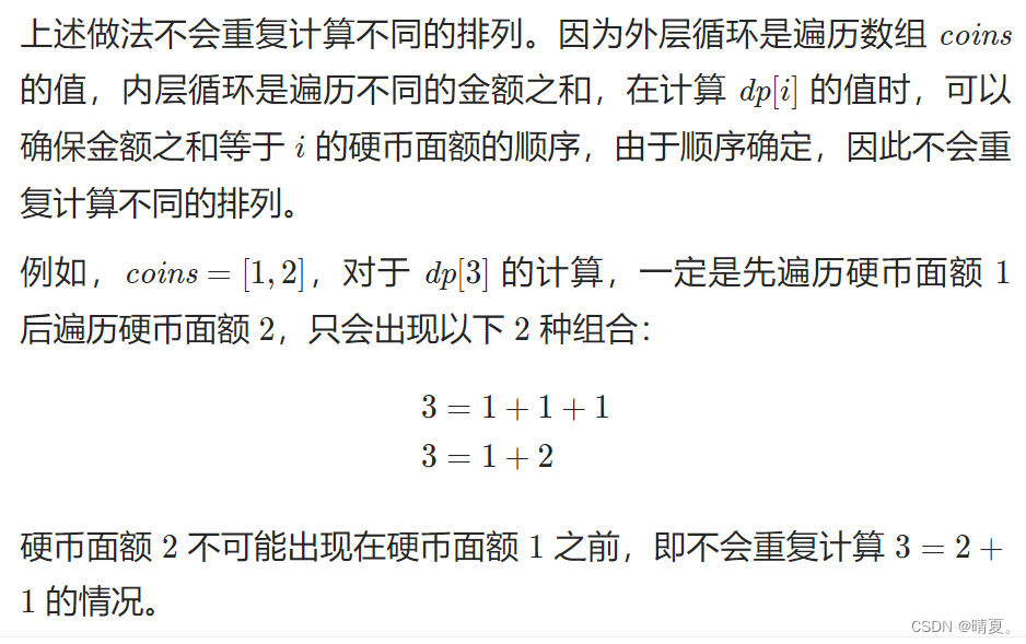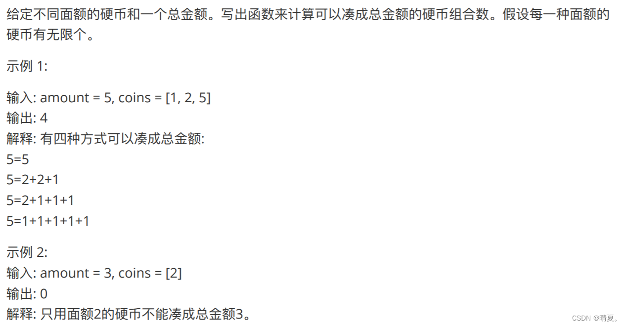 注意题⽬描述中是凑成总⾦额的硬币组合数,为什么强调是组合数呢?