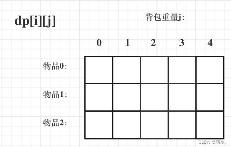 dp[i][j] 表示从下标为[0-i]的物品⾥任意取,放进容量为j的背包,价值总和最⼤是多少。