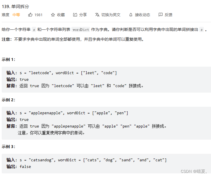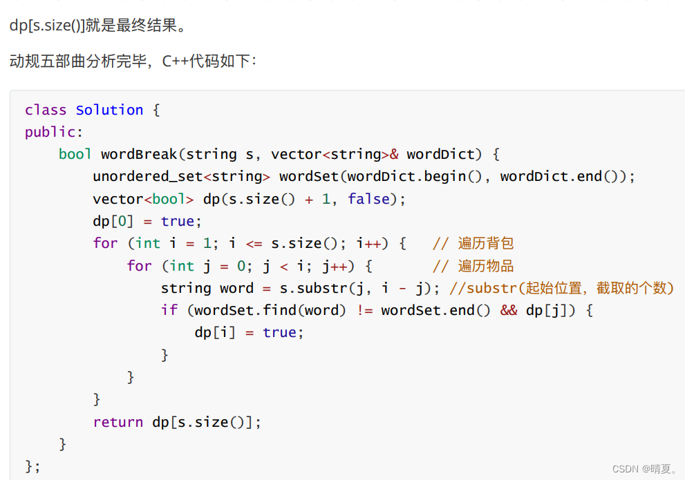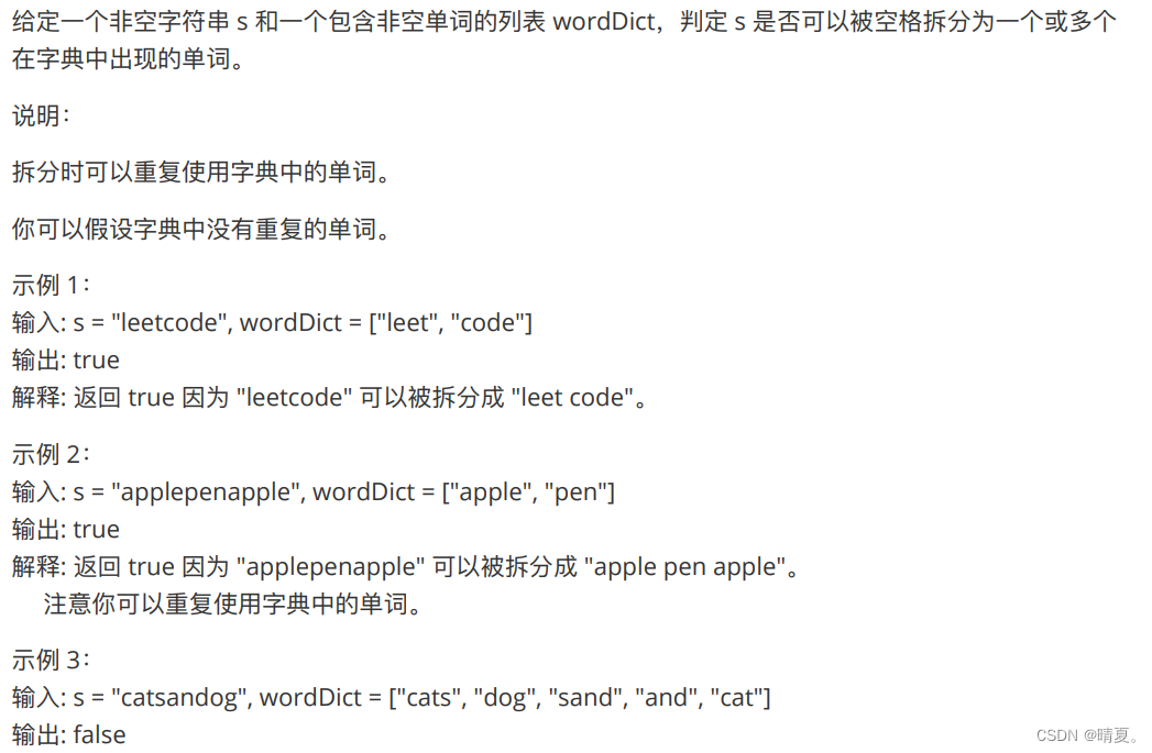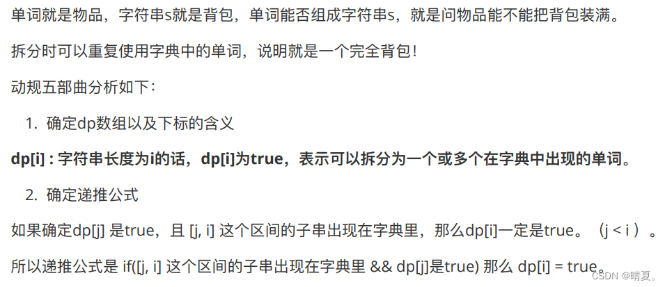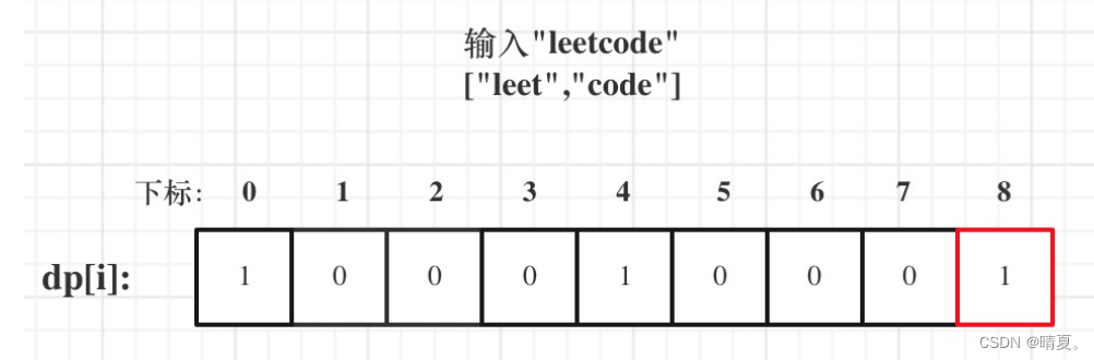 自己需要初始化第一个格子的位置,可以用dp0表示,意思是空字符串在字典中一定可以找到,即的 拼接一定为true,