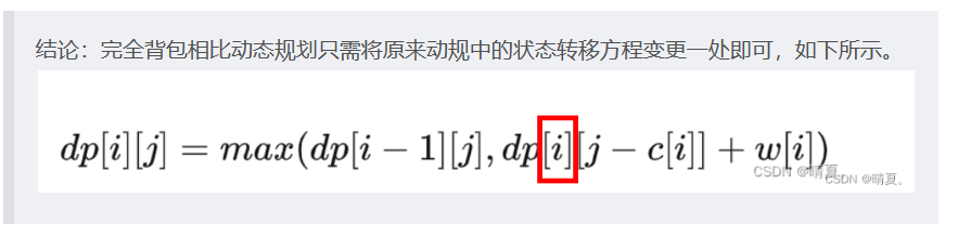 而我们上面讨论过,由于是完全背包,所以只需要改动一个地方即可: