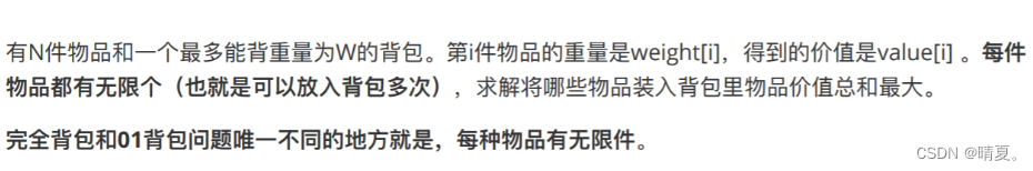 void test_CompletePack() {vector weight = {1, 3, 4};vector value = {15, 20, 30};int bagWeight = 4;vector dp(bagWeight + 1, 0);for(int i = 0; i < weight.size(); i++) { // 遍历物品for(int j = weight[i]; j <= bagWeight; j++) { // 遍历背包容量dp[j] = max(dp[j], dp[j - weight[i]] + value[i]);}}cout << dp[bagWeight] << endl;