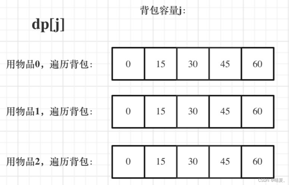 此处的初始化,dp[j]代表容量为j的物品的最大价值。