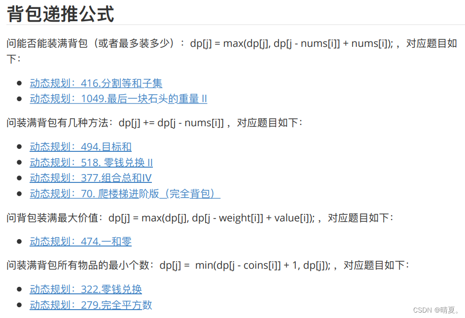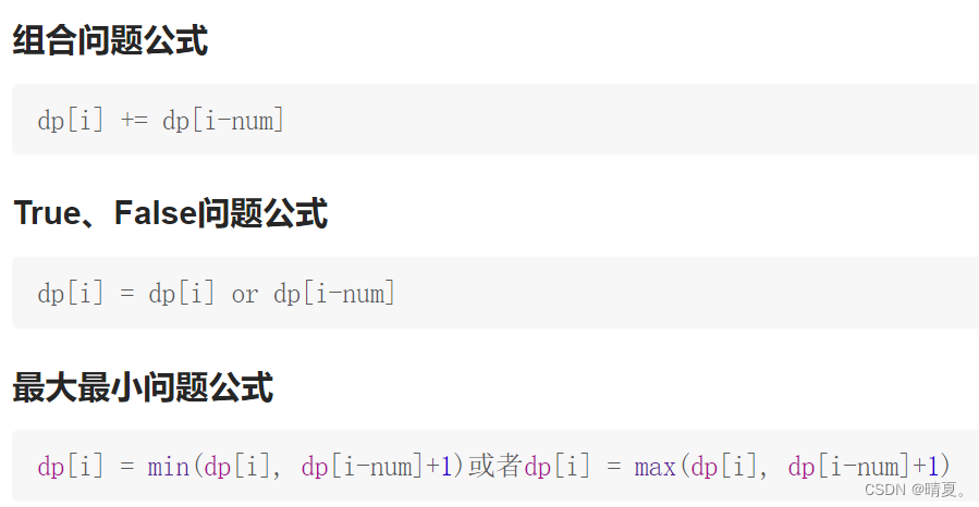 常见的背包问题有1、组合问题。2、True、False问题。3、最大最小问题。