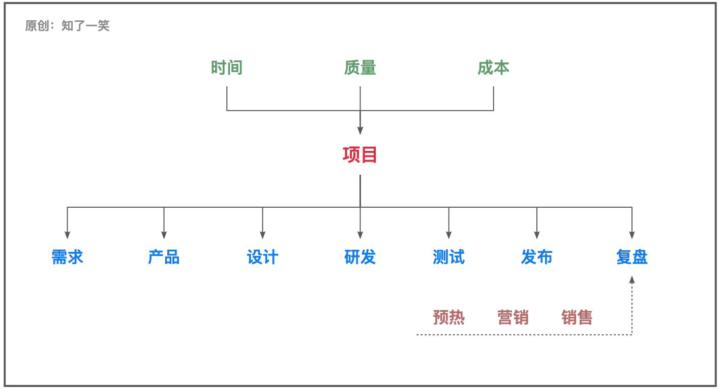 项目推进的流程,通常追求质量、成本、时间的平衡;