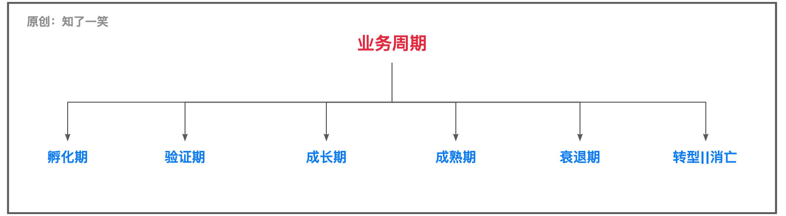业务的发展周期:孵化期、验证期、成长期、成熟期、衰退期、转型或者消亡期;
