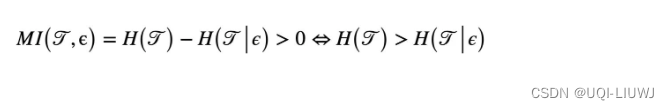 - 此时H(J)表示没有噪声时候的任务熵,它比H(J|ε)(有噪声时候的任务熵)大,也就是说,有了噪声之后,反而混乱程度小