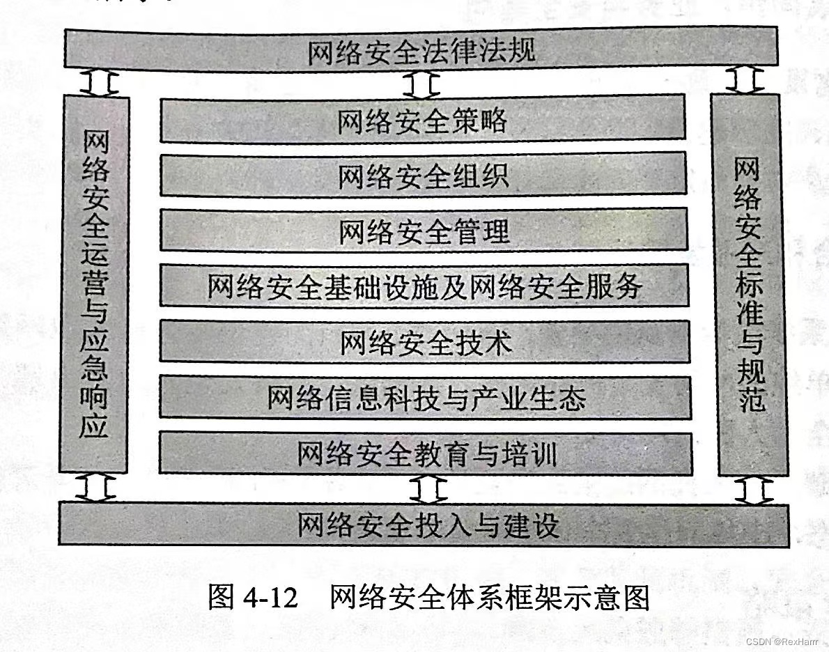 网络安全体系:是网络安全保障系统的最高层概念抽象,是由各种网络安全单元按照一定的规则组成的,共同实现网络安全的目标。