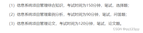 考试科目分为三门:信息系统综合知识、案例分析和论文考试考三科简单总结介绍一下: