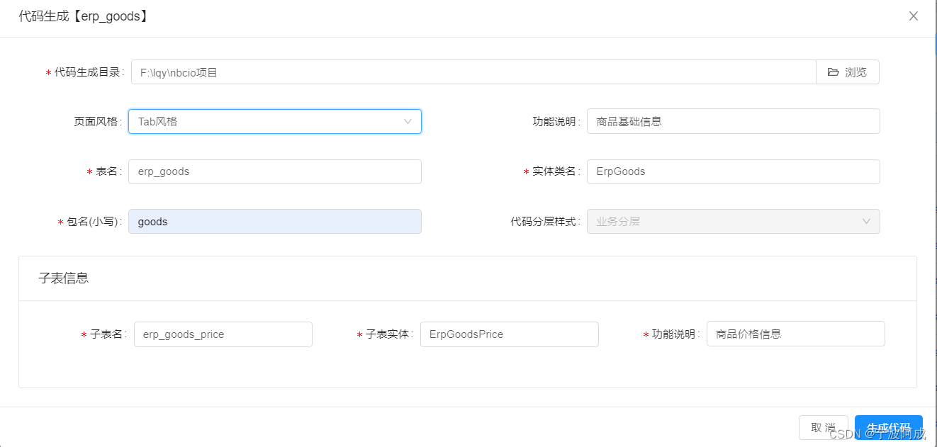 二、生成代码使用页面风格tab风格