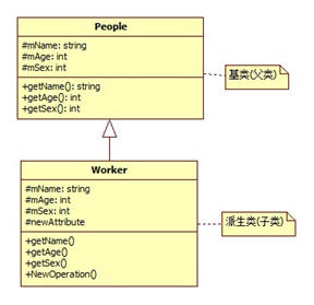 一个B类继承于A类,或称从类A派生类B。这样的话,类A成为基类(父类), 类B成为派生类(子类)。