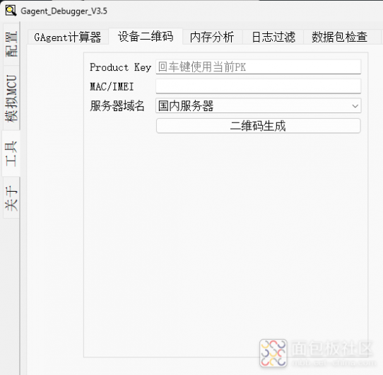 我们点击左边的报文,中间一栏会出现报文的解析信息,这是我觉得相当好的设计,然后我们点击工具—设备二维码,输入product key和imei,这个imei我开始找很久找不到,后来发现在报文里,因为我写测评的时候又连不上模块了,看不到imei,就麻烦你们找一下了。